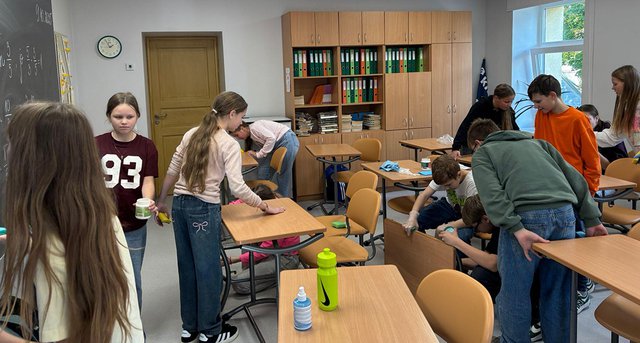 6.c klase Labo darbu nedēļā aizrautīgi un čakli uzkopa savas klases telpu.