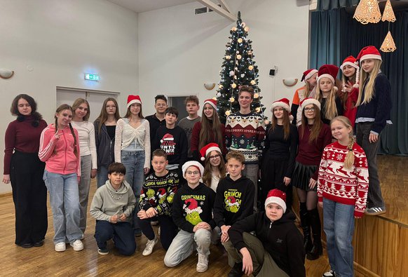 Madara, Karolīna, Samanta un Lauma no 6. klases bija sagatavojušas jautras Ziemassvētku izdarības pašpārvaldes dalībniekiem.